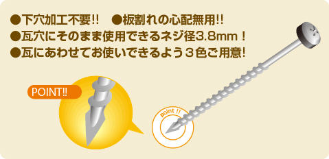 瓦用SUS410 パワーけらばビス ∴3.8x65(ブロンズ)オレフィンP付